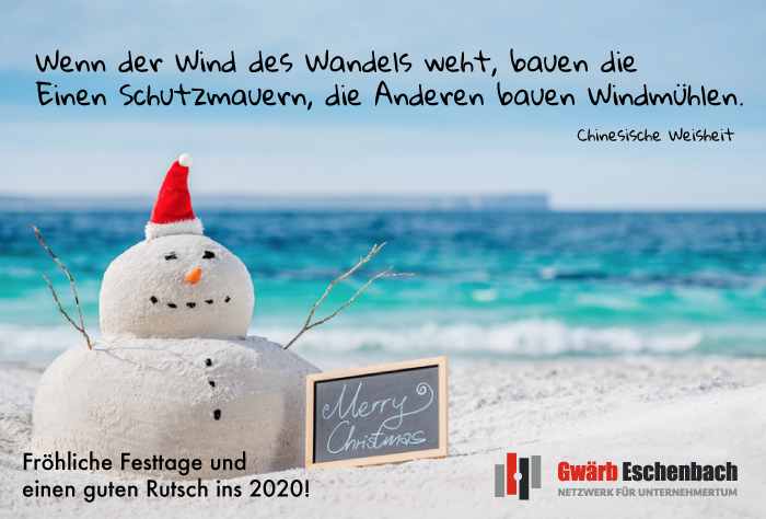 Vieles ist im Umbruch - weltweit. Und selbst in Eschenbach brechen 2020 gewissermassen neue Zeiten an. Unternehmerinnen und Unternehmer versuchen immer, neben Risiken auch Chancen auszumachen, zu agieren wo möglich - und zu reagieren wo nötig. Was wir auch untermehmen, wir fühlen uns dabei stets unserer treuen Kundschaft verpflichtet und setzen alles daran, auch im sich immer schneller ändernden Umfeld Mehrwert für sie zu schaffen.